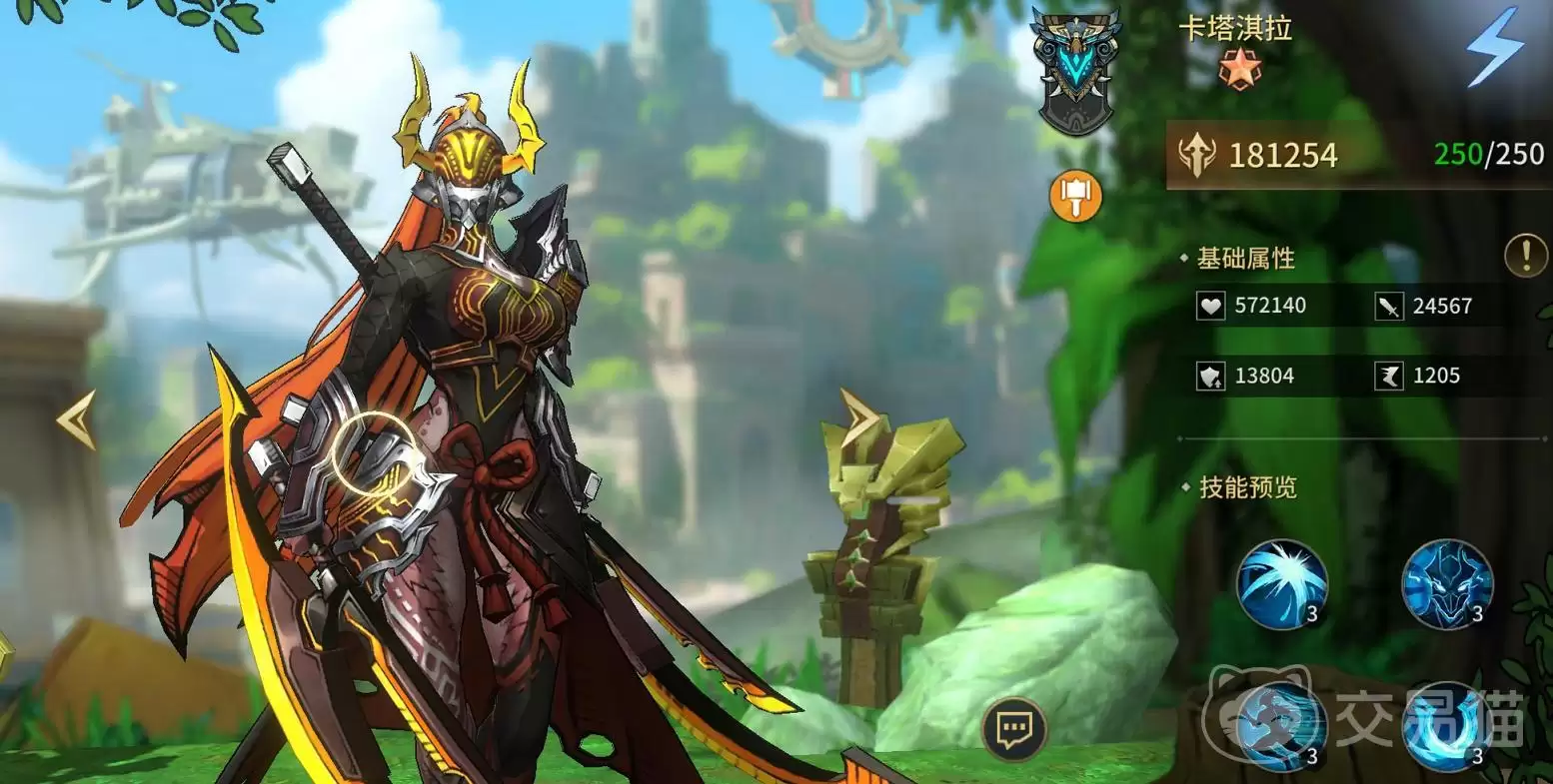 卡塔淇拉是一位典型的高格挡型半坦输出。她的主动技能初始随机攻击2名目标,升级后可扩展至4目标;释放期间自身攻击力与格挡率会大幅提升。她的被动赋予了加速与格挡强化,而核心机制在于:每次成功格挡,都能触发生命恢复。她的普攻虽然是随机目标,但具备降低敌方精准度的效果,升星后则会改为锁定前排。这套战斗逻辑非常清晰:通过高频的格挡来建立稳定的回血循环,再配合多段的范围伤害,让她在维持自身生存的同时,还能持续给对手施加压力。