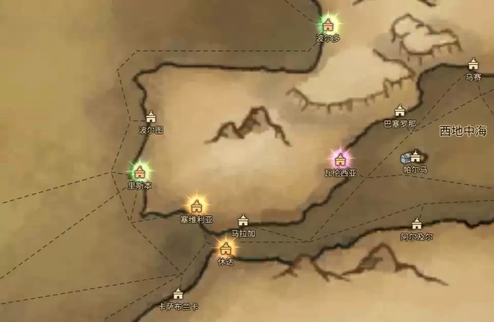 伊比利亚半岛,大航海时代的核心舞台之一,港口密集,资源丰富,是前期发展的关键区域。