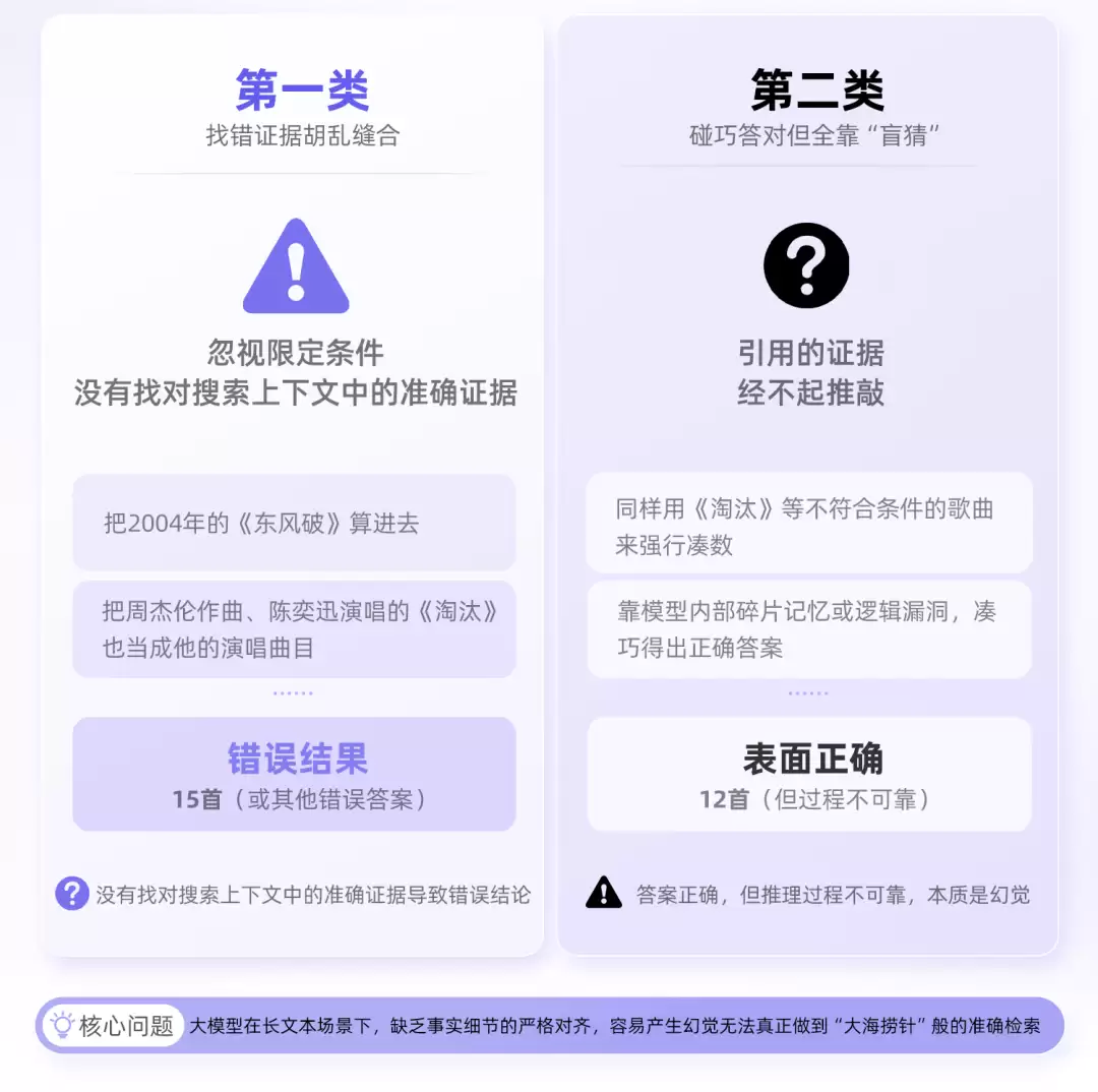 这种脱离证据的推理,正是大模型在面对长文本时最容易犯的典型幻觉。