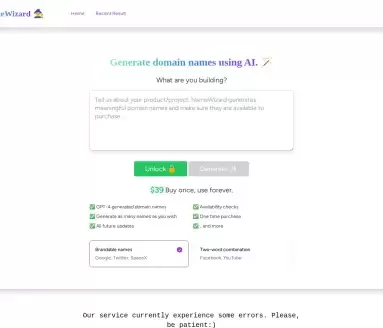 在为新项目寻找那个“对”的域名时,不少人都有过类似的体验:好记的早已被注册,剩下的要么太长,要么缺乏品牌感。这正是NameWizardAI诞生的初衷——它是一款专门为解决命名难题而生的AI工具。其核心很简单:利用先进的GPT-4算法,帮你生成既独特又充满品牌潜力的域名,并直接告诉你哪些还能注册。它采用一次性买断制,付一次费,就能永久使用并享受后续更新,对于经常需要创意命名的创业者或开发者来说,这无疑是个值得关注的选择。