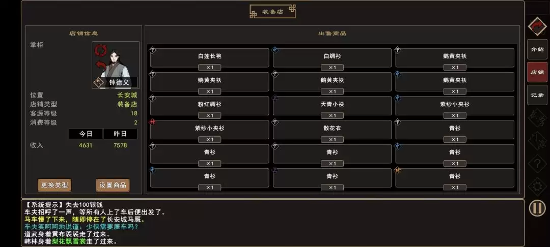 说到长安,那就必须重点提一下了。这里拥有全游戏人气最高(18点)的黄金店铺,当然,售价也高达20000银钱。这投资值不值?咱们接着看。
