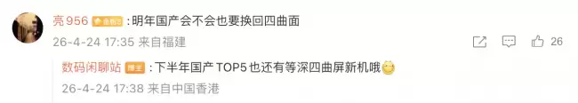 更值得玩味的是后续内容。该博主同时透露,今年下半年,“国产 TOP5”品牌也将推出采用“等深四曲面”设计的新机。这意味着,从国际巨头到国内一线品牌,大家似乎不约而同地将“四曲面”视为了下一个阶段高端机型ID设计的关键赛道。