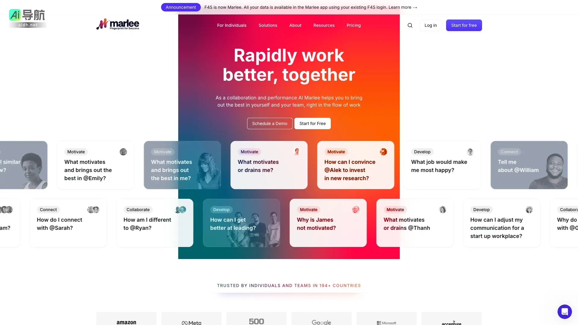 Marlee 通过AI技术提升团队协作与个人表现,助力高效工作与自我发展官网入口:https://getmarlee.com/