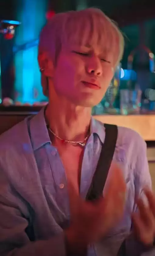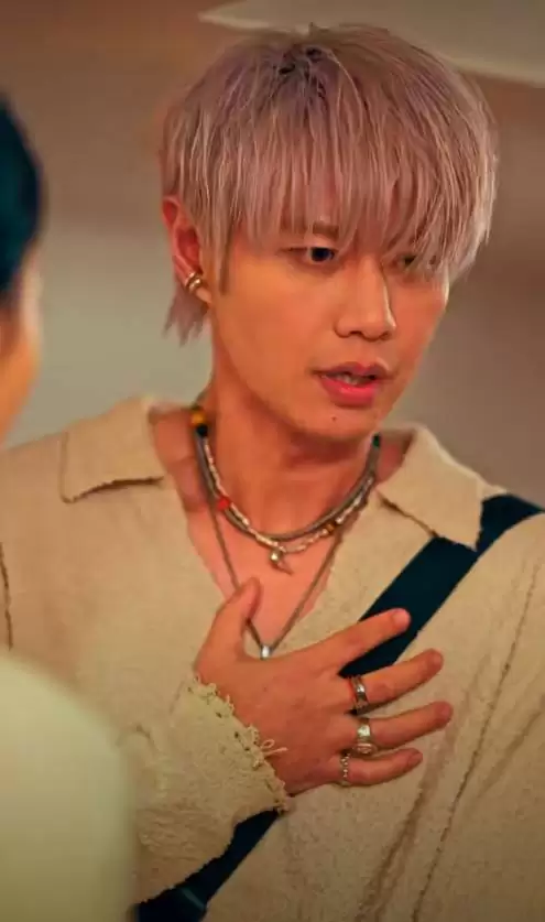 赵荀的出场造型,差点让人没认出来。金色长发,刘海微遮眼睛,配上金属耳饰和粉色卫衣,整体造型年轻了不少。他完全扫去了反派的阴郁气质,也看不见硬汉的影子,活脱脱一个都市潮男。