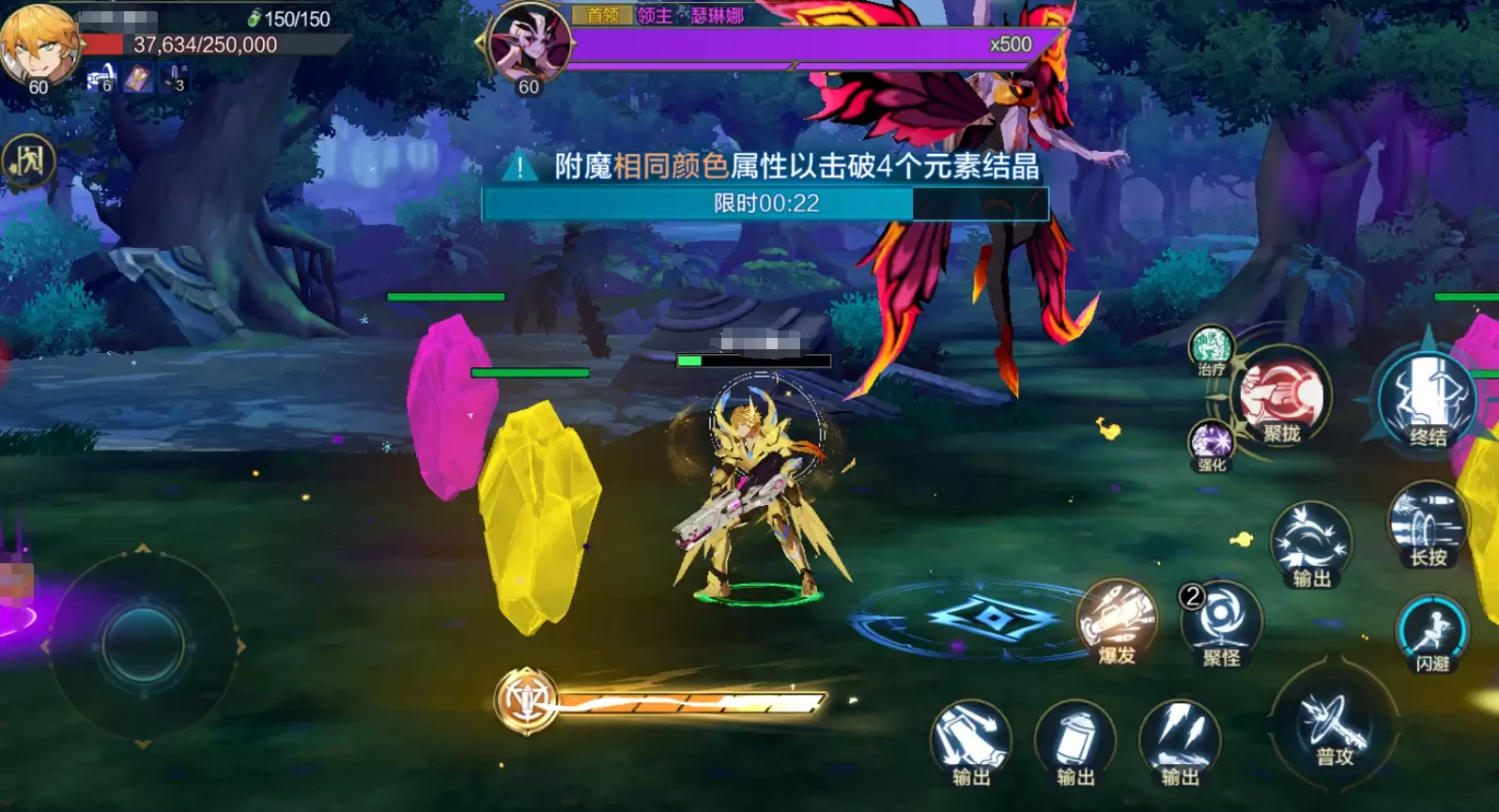 来到最终阶段,领主瑟琳娜登场,她的机制最为特殊。战斗中,她会召唤4枚异色结晶,同时自身进入无敌状态。这时,屏幕上会出现一个倒计时——团队必须在时限内击碎所有结晶。否则倒计时结束,瑟琳娜会发动全屏激光,那场面,基本就意味着团灭。