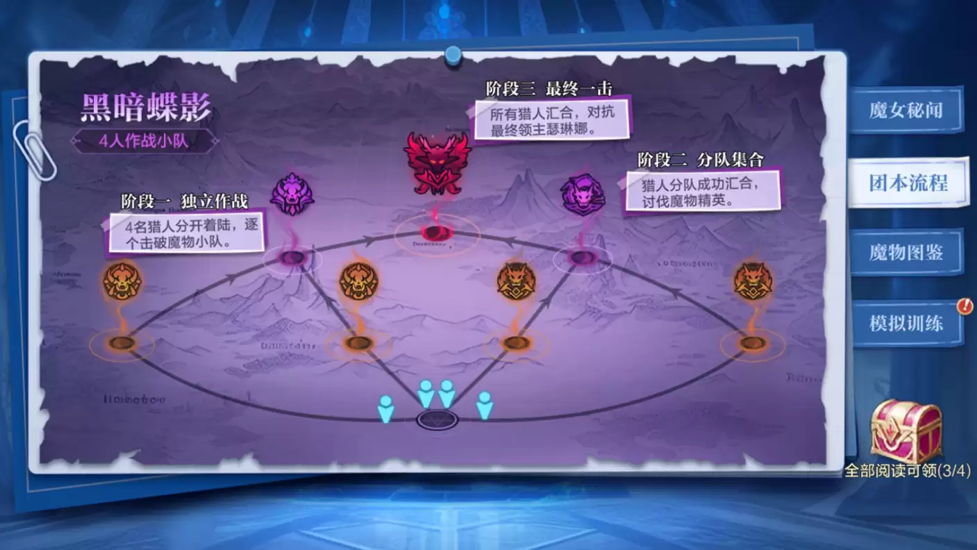 黑暗蝶影这个四人团本,流程清晰,总共分为三个阶段。第一阶段,大家需要各自为战,清理自己节点内的敌人。好消息是,这阶段的敌人算是“开胃菜”,招式普通,威胁不大。只要注意利用闪避躲开攻击,别硬扛太多伤害,基本上都能轻松过关,没什么性命之忧。等所有队友都解决完各自的小怪,队伍就能重新集结,开启更具挑战的第二阶段。