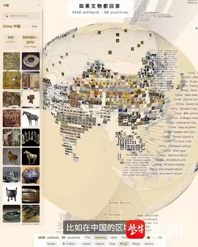 在寻找创作题材时,他意识到,文物无疑是世界各国人文精神最有力的载体。恰逢看到法国通过立法归还掠夺文物的新闻,大英博物馆这个念头瞬间被点燃。“如果能把馆藏文物的故乡在地图上标注出来,那就不再是冰冷的数据堆砌,而是一个个‘离家’的故事。通过这种方式,或许能让更多人记住那些流落异乡的国宝。”