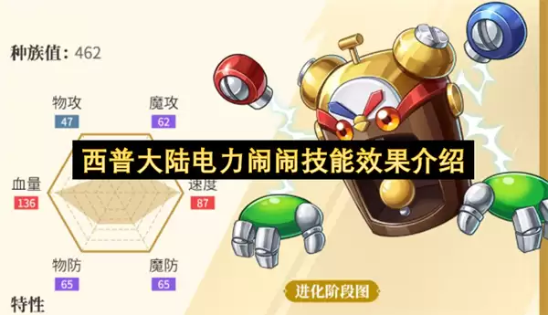 在《西普大陆》的精灵图鉴里,电力闹闹的定位相当明确:一位融合了电系爆发与光系干扰的混合输出手。它擅长什么?简单来说,就是通过多段攻击和场地强化,在持久战或者面对多个敌人时,打出令人侧目的压制效果。其技能组合的核心,始终围绕着削弱对手、控制场面以及为电系队友创造输出环境这三个目标展开。接下来,我们就来详细拆解一下这位精灵的技能效果。