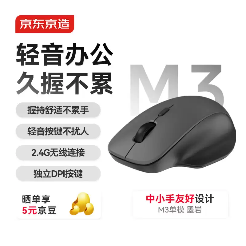 京东京造 M3 单模轻音鼠标发布:轻量化设计,49.9元入手
