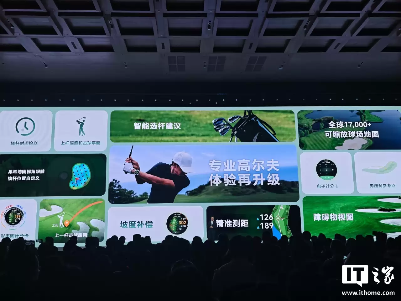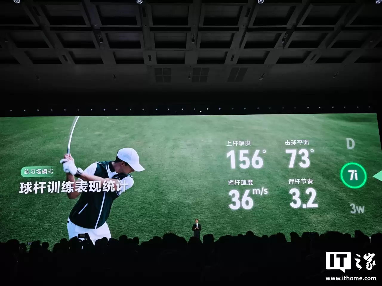 除了外观上的焕新,此次升级的重头戏在于高尔夫运动的深度赋能。手表在高尔夫功能模块上迎来了四项关键进化,足以让技术型球友眼前一亮:其一是更精准的挥杆动作检测,其二是细致的球杆表现分析,帮助用户量化每一支球杆的实战数据。其三,果岭视图进行了全面升级,地形地势一目了然;其四,创新的多彩表圈计分功能,让成绩记录变得更加直观便捷。