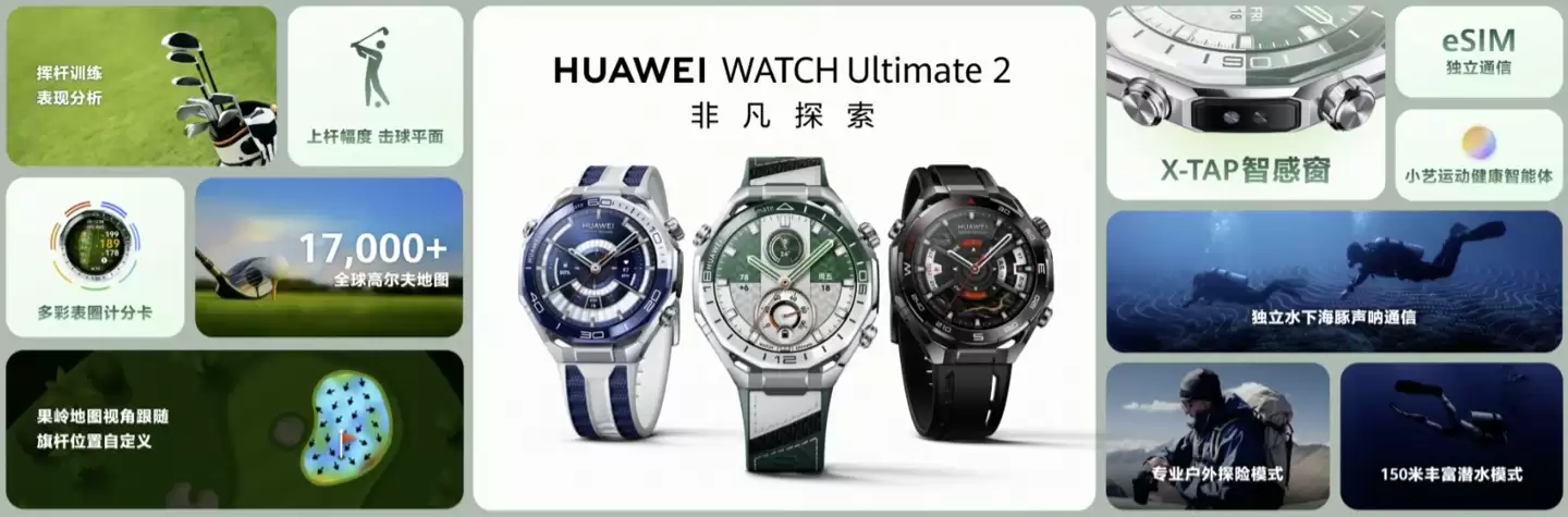 华为 WATCH Ultimate 2 非凡探索手表“旷野绿”上市:三款表带、高尔夫功能升级,7999 元