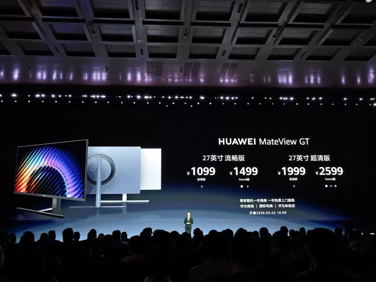 华为 MateView GT 新款显示器发布,售价 1099 元起