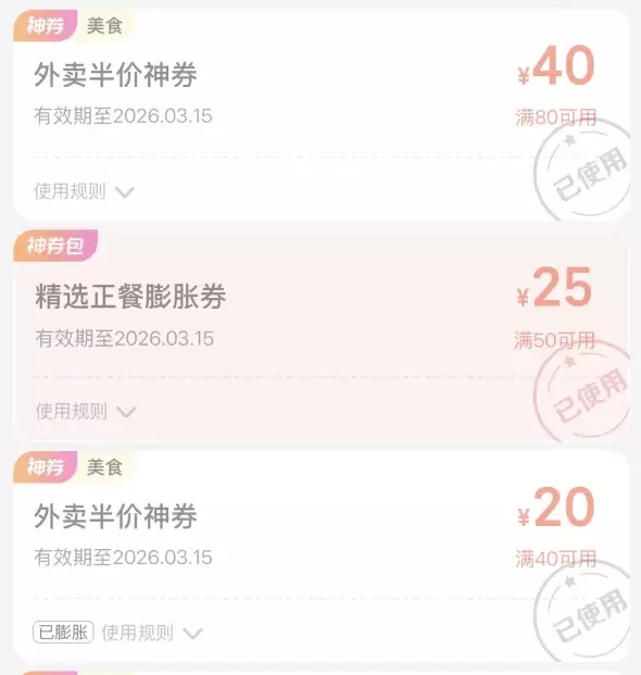 购买年卡后,请务必养成一个关键支付习惯:在每次美团下单前,优先进入神券页面进行膨胀操作。选定最符合当前订单面额的膨胀结果后,再完成支付,以此实现单笔订单的优惠最大化。