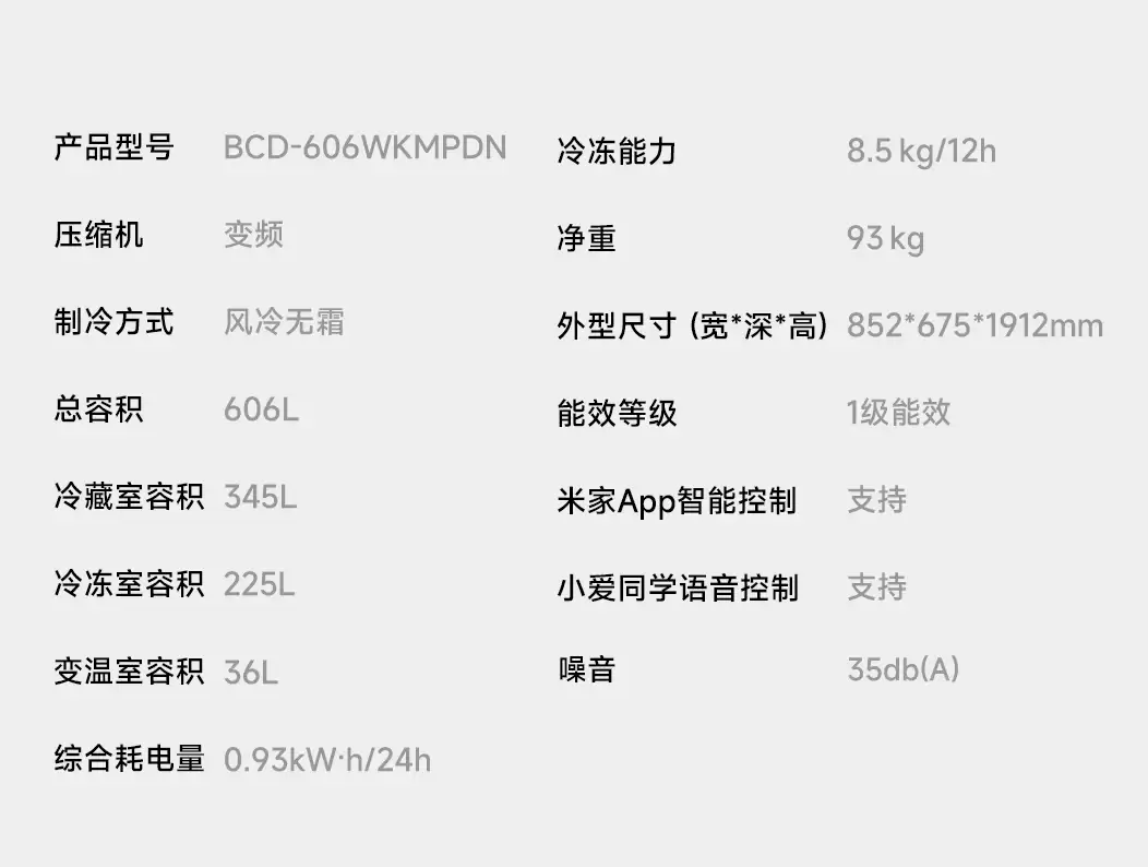 小米推出“米家冰箱 Pro 双系统十字 606L”:345L 冷藏区 +225L 冷冻区,3999 元