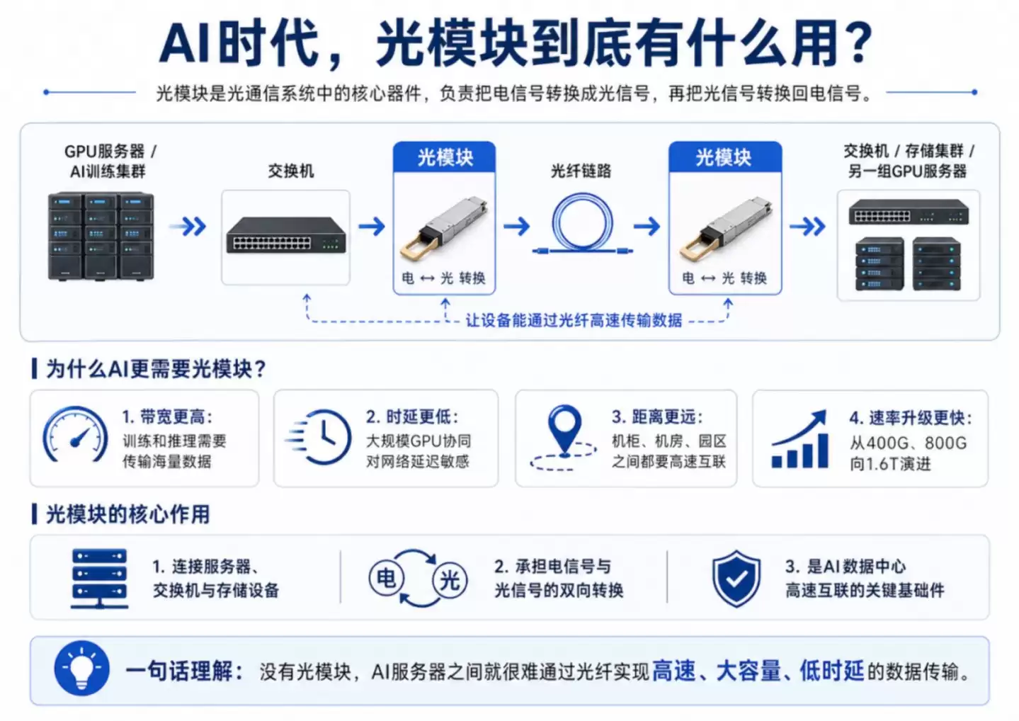 GPU负责计算,光模块负责让这些GPU彼此说话。