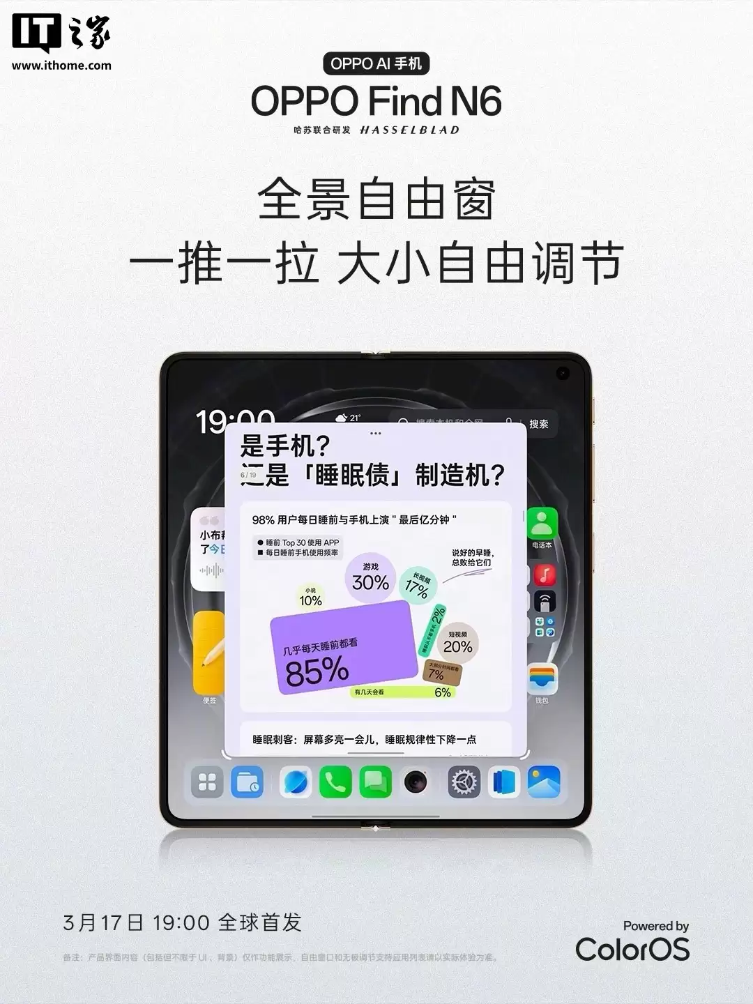 OPPO Find N6 全景自由窗功能首曝:大小自由调、浮窗 / 分屏 / 全屏任意切,3 月 17 日首发