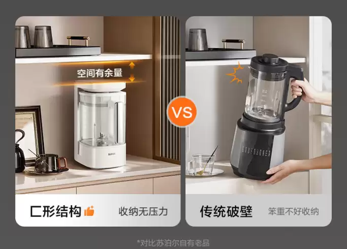 新型匚形结构设计:苏泊尔小方糖无刷电机破壁机上市,相同容量体积缩小 63.5%