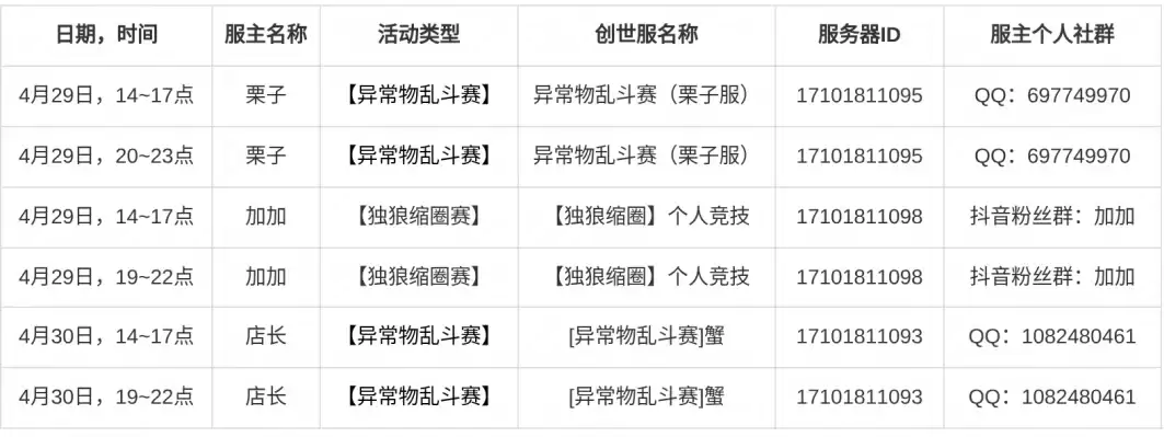- 每轮活动结束后,服主会将该轮次的排行榜截图提交给官方。官方将在5月6日至5月9日期间进行活动名次公示。