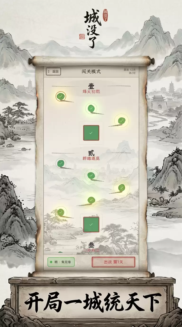 《城没了》是一款颇具特色的水墨风格Roguelike策略游戏。它的核心体验可以概括为“开局一座城,小兵无限造”。玩家需要招兵买马,攻城拔寨,依靠智谋与策略来征服列国,最终达成统一天下的霸业。