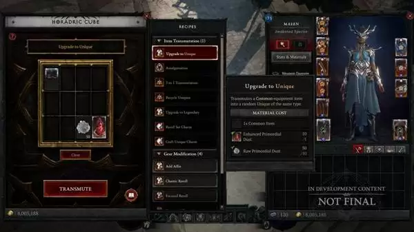 消耗指定数量的蓝色、稀有和传奇符纹,可以定向制作出你想要的传奇符纹。这彻底解决了“死活打不到关键符纹”的痛点,让核心构筑的成型路径更加可控。