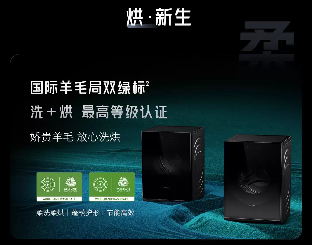性能方面则更为硬核。官方宣称其洗涤和烘干能力已经达到了行业顶级水准。一个有力的佐证是,全系列机型均获得了国际羊毛局的洗烘双绿标认证,这意味着即使处理娇贵的羊毛织物,也能得到专业级的呵护。