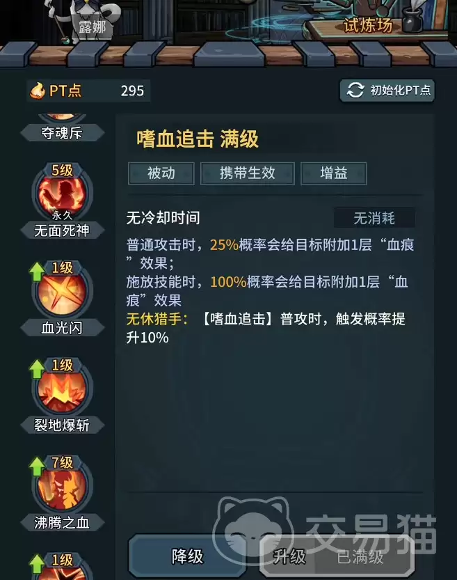 推荐携带的四技能组合为:血魂浴火、嗜血追击、连闪、复生